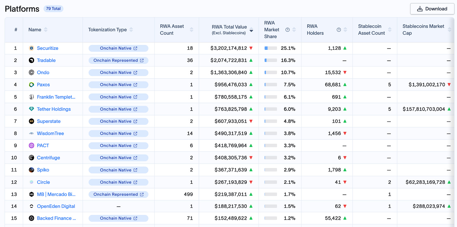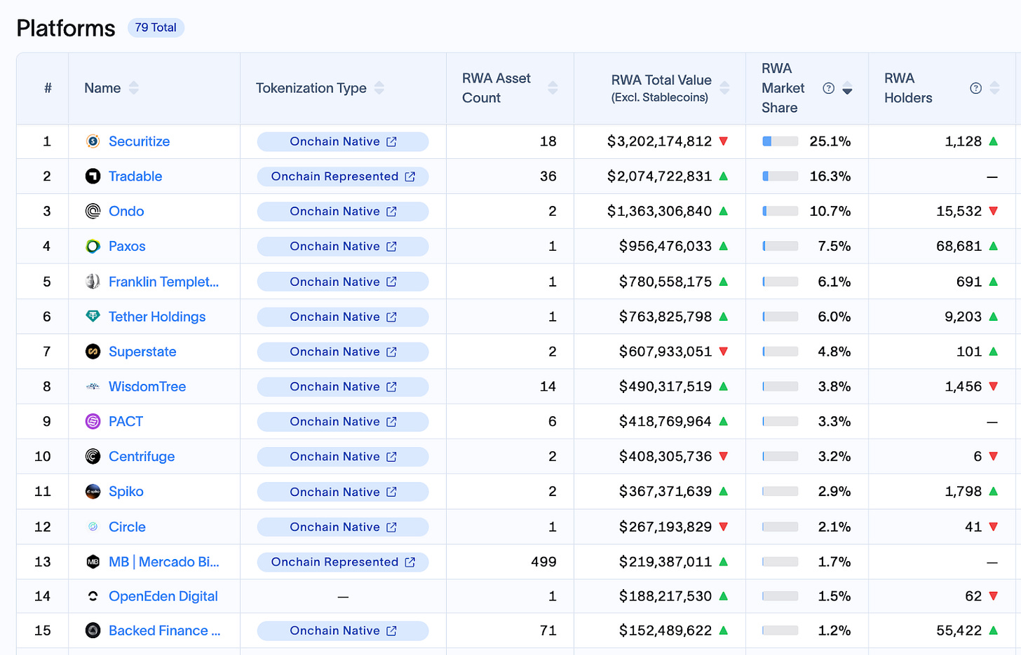 Heavyweight Rivals: Securitize‑BlackRock BUIDL, Franklin BENJI wrappers, Ondo OUSG/USDY scaling fast.